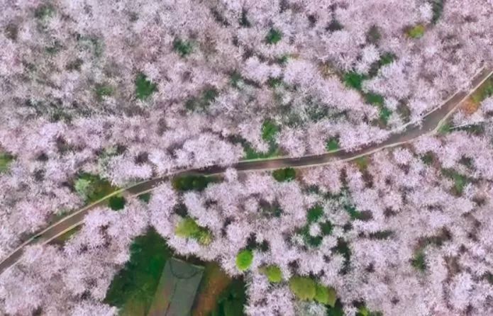 每当樱花盛放的季节,6000亩樱花次第开放,灿若云霞,壮观成爱你的形状。