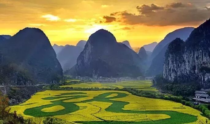 平坝农场或笔直或蜿蜒的路,在花海间穿行而过,纵横几公里。