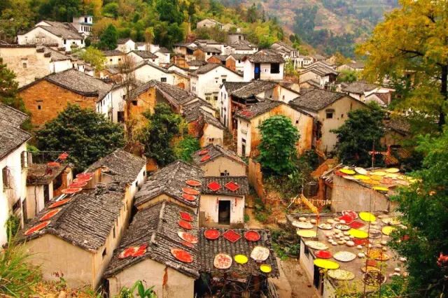 ▼在歙县,一座座土楼错落有致,金黄明媚的