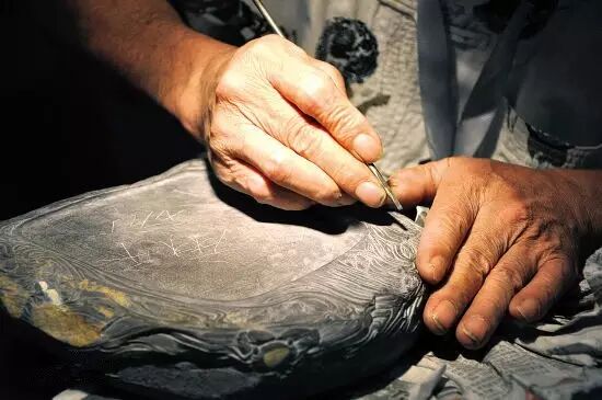 歙砚,中国四大名砚之一,驰名于唐代,至今已有一千多年历史。南唐后主李煜说“歙砚甲天下”;苏东坡评其“涩不留笔,滑不拒墨,瓜肤而縠理,金声而玉德”;大书法家米芾说:“金星宋砚,其质坚丽,呵气生云,贮水不涸”。