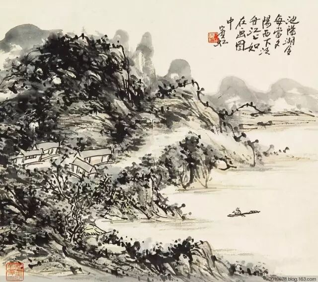 且看山头斜阳映炊烟,湖中兰舟日边来。